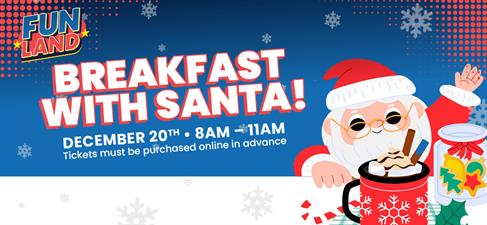 Join us on December 20th from 8am to 11am for a magical morning with Santa at Fun Land Fredericksburg! Enjoy a delicious breakfast of pancakes, sausage, fresh fruit, and juice, plus $20 in arcade game play. Ride the Frog Hopper, try your luck at Mini Bowling, and make memories with Santa himself!
