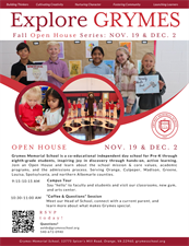 Grymes Memorial School is a co-educational independent day school for Pre-K through eighth-grade students, inspiring joy in discovery through hands-on, active learning. Join an Open House and learn about the school mission & core values, academic programs, and the admissions process. Serving Orange, Culpeper, Madison, Greene, Louisa, Spotsylvania, and northern Albemarle counties.